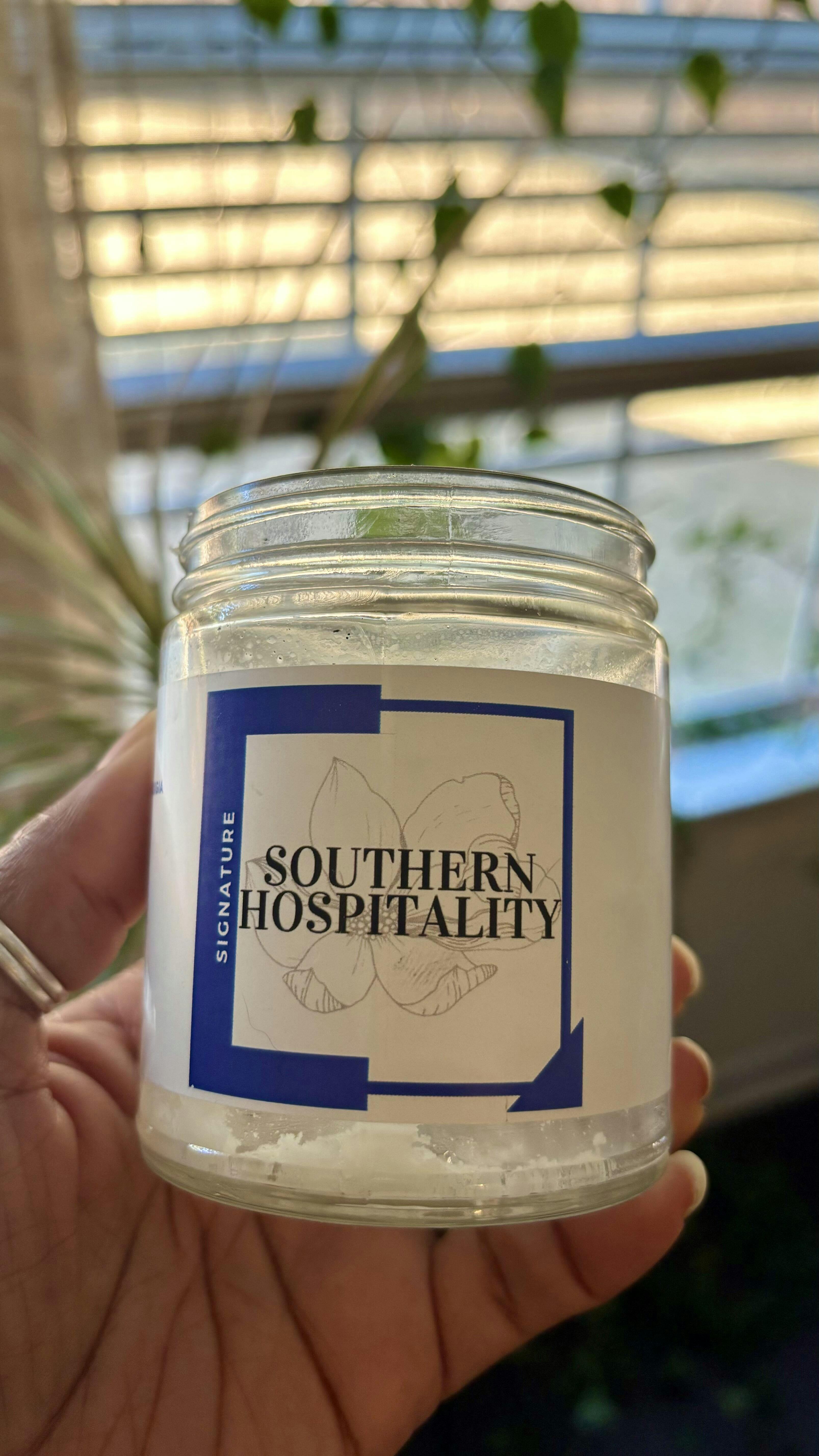 This candle is a just the right amount of peach, green, jasmine, musk, & vanilla.